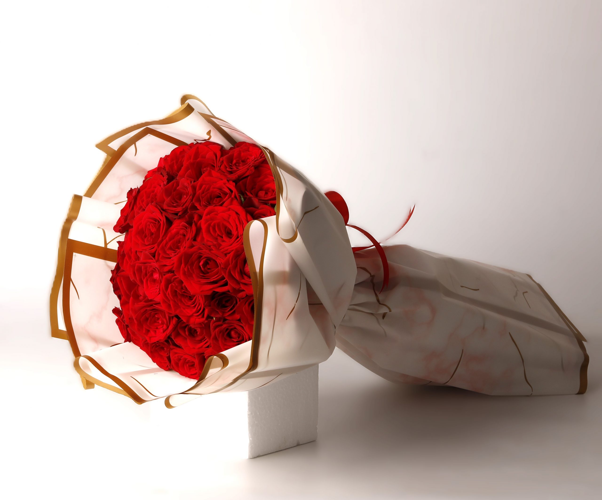 Elegance personified, our Crimson Harmony Bouquet features 30 radiant red roses, meticulously arranged to capture the essence of love and passion. Each velvety bloom whispers tales of romance and admiration, creating a symphony of heartfelt emotions. This bouquet is a timeless expression of love, perfect for conveying your deepest sentiments on special occasions or simply as a gesture of affection. Let the rich, red hues of these roses paint a canvas of love and warmth, making every moment unforgettable