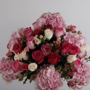 “Immerse yourself in the enchanting beauty of our bliss Vase. This captivating arrangement features the soft elegance of hydrangea flowers, gracefully complemented by the timeless allure of roses and the delicate charm of baby roses. A symphony of textures and hues, this bouquet is a perfect blend of sophistication and natural grace, making it an exquisite gift for any occasion.”