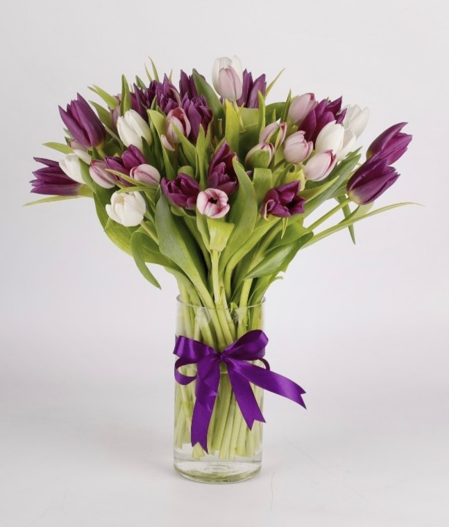 “Behold the brilliance of our Tulip Radiance Vase, adorned with 30 tulips in a stunning array of colors. This vibrant bouquet captures the essence of spring, infusing your space with a burst of natural radiance and the timeless charm of tulip blooms. A perfect gift to brighten any day with the elegance and beauty of these exquisite flowers.”